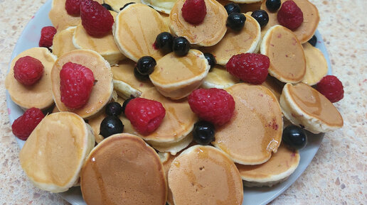 МИНИ -ПАНКЕЙКИ С БАНАНОМ /ВКУСНЫЙ ЗАВТРАК #завтрак #рецепт #панкейк