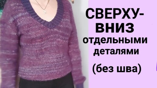 Техника вязания Сверху-Вниз отдельными деталями (с анатомическим углублением по горловине + скос плеча). Безшовная.