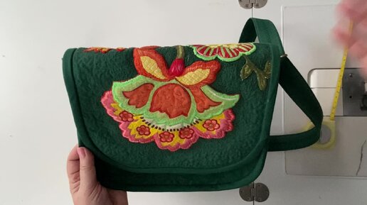 Стеганая сумочка "Волшебство" с вышивкой. Аппликация на сумке. Стежка. Вышивка.