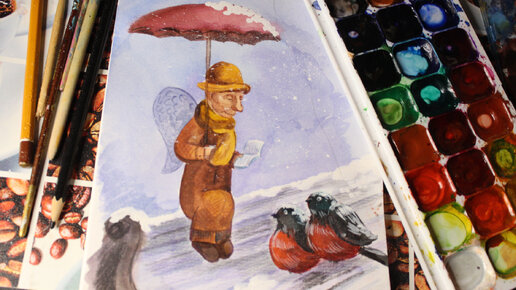 Петербургский ангел акварелью. Моя вариация живого ангела