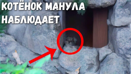 Котёнок манула боится выйти из домика. Ленинградский зоопарк