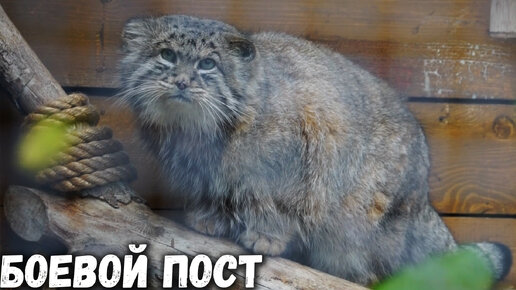 Манул Свэн не изменяет себе и целый день сидит на любимом брёвнышке. Ленинградский зоопарк