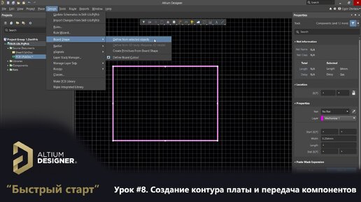 Altium Designer “Быстрый старт” - Урок 8. Создание контура платы и передача компонентов