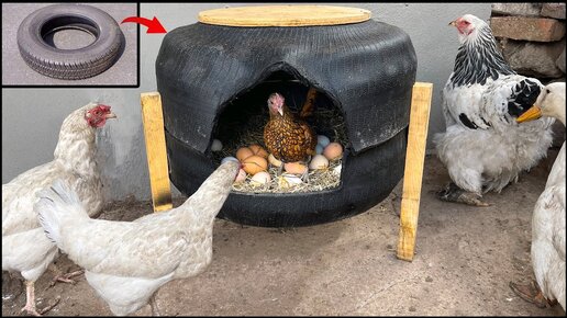 Необычная идея: практичное куриное гнездо из автомобильных покрышек