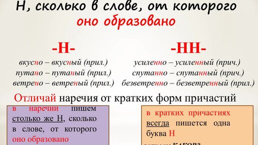 Н и НН в наречиях на -о, -е. ОТЛИЧИЕ НАРЕЧИЙ ОТ КРАТКИХ ПРИЧАСТИЙ