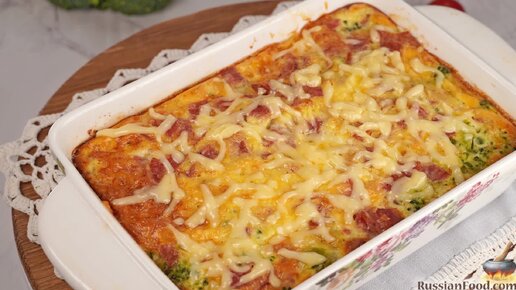 Аппетитный и питательный завтрак или ужин. Запеканка с брокколи и ветчиной