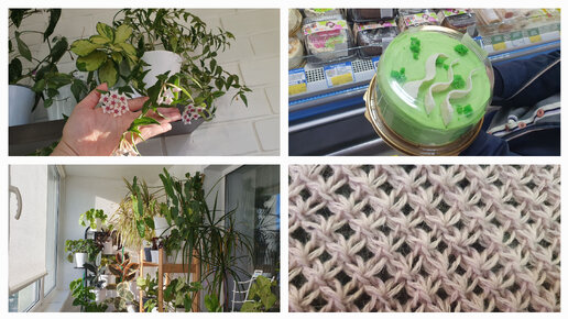 Видео 21.01.2024 г Комнатные растения/ Мое вязание/ Красивая сетка спицами из пуха норки/ Торт