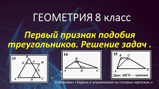 Геометрия 8 класс. Первый признак подобия треугольников в задачах 13, 14, 15. Рабинович.