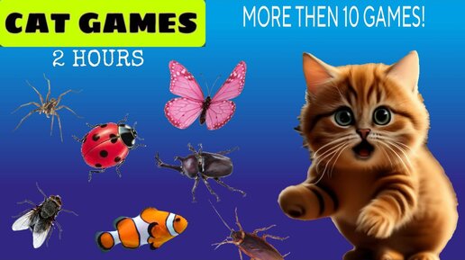 ТВ для котиков. Игры для котов и кошек. Бегающие - Пауки, Тараканы, Мухи, Веревочки, Бабочки, Птички 🐞🐦🐁🪳, которых котик может ловить
