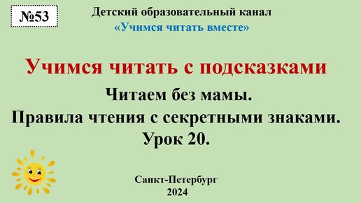 Учимся читать с подсказками. Читаем без мамы. Правила чтения с секретными знаками. Урок 20. Выпуск №53.