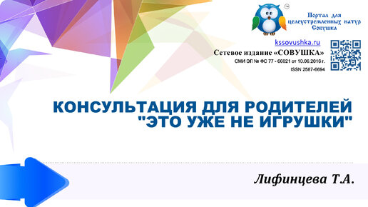 Консультация для родителей "Это уже не игрушки"