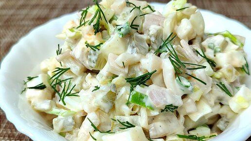 Салат с кальмарами и маринованными огурцами. Вкусная и простая закуска.