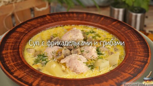 Без бульона быстрее, с булгуром интереснее. Суп с фрикадельками и грибами