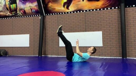 Перекат с броском палки ногами
