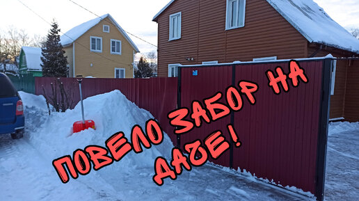 Откапываю дачу от снежного завала , вывернуло листы на заборе!