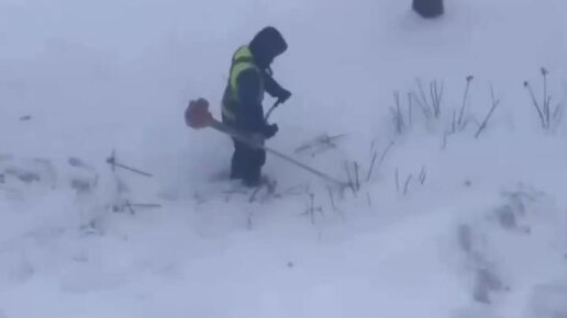 Санкт-Петербург наши дни! Зачем дворник косит кусты в сугробе??? Ответ в описании)