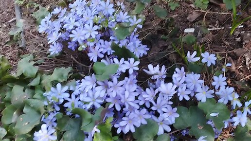 Первоцветы в саду Гриндачи в 2023 году. Печеночницы, сциллы (пролески), хохлатки, хионодокса.