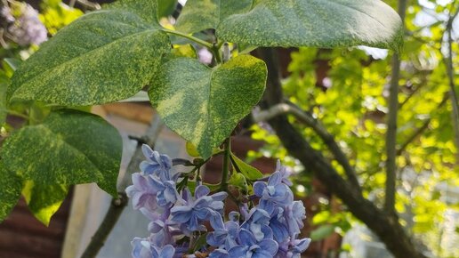Сирень махровая с пестрыми листьми Aucubaefolia (корни собственные) в саду Гриндачи в 2023 году.