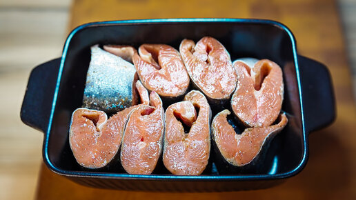 Наш быстрый семейный рецепт сочной горбуши без использования растительного масла.