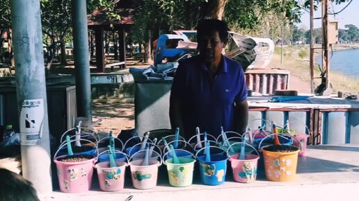 Кормим рыбу в пруду Topa Sak Dam Таиланд