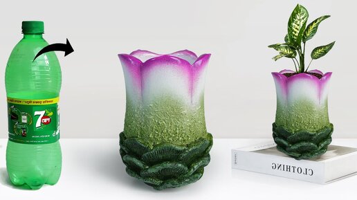 Стильная ваза для цветов из пластиковой бутылки || Изготовление вазы для цветов из цемента