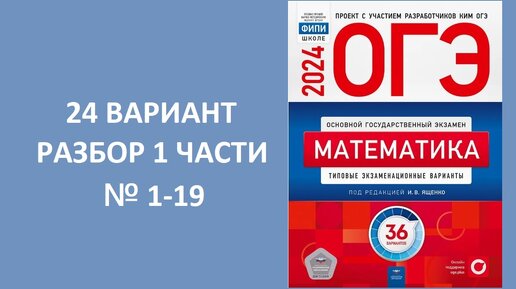 Вариант № 24 ОГЭ 2024 по математике из сборника Ященко 36 вариантов. Разбор 1 части. № 1-19. Готовимся вместе к ОГЭ 2024!!!