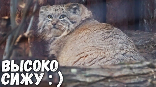Манулу Шу нравится гулять по верхним полочкам в новом вольере. Ленинградский зоопарк