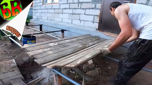 Продолжение постройки террасы своими руками, часть 4. Крепкий временный настил из подручных материалов, выдерживает даже меня