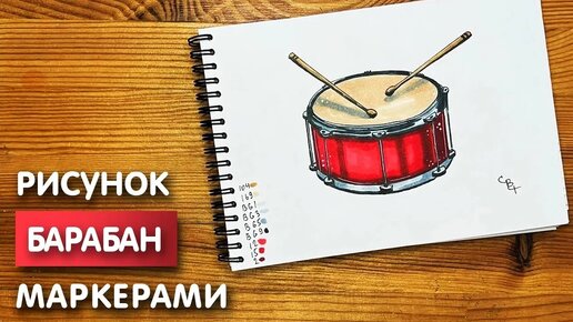 Как нарисовать барабан карандашом и скетч маркерами | Рисунок для детей, поэтапно и легко
