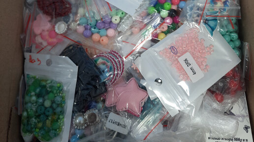 Распаковка посылки с материалами для рукоделия. Ленты, бусины, кабошоны и многое другое для создания бантиков.
