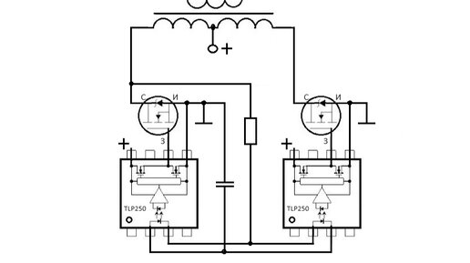 Преобразователь из оптопары TLP250, очень простая и мощная схема, с 12 на 220 вольт, 50 Гц.