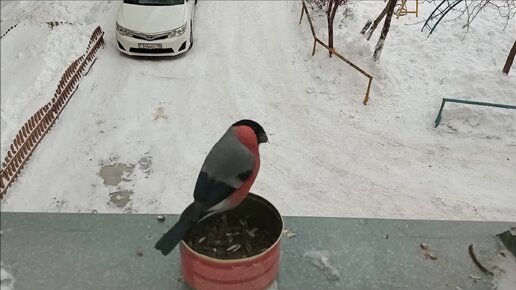 Птицы! Важный СНЕГИРЬ и Наглые СИНИЦЫ! Осторожные ВОРОБЬИ! Снегирь чешет уши как собака #птицы #снегирь #синицы #воробьи #собака