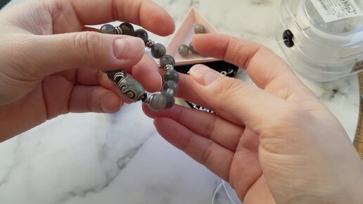 Браслет из лабрадора с бусиной Дзи. Мастер-класс.