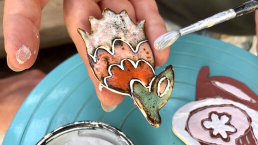 🍯 Покрывной ангоб Глазуруем уникальную брошь Алина Вестфрид Гончарная школа Волшебство керамики
