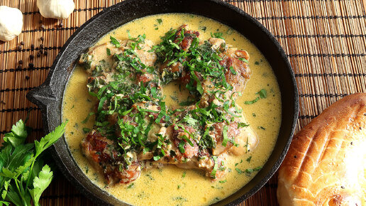 Шкмерули (Чкмерули) из курицы в сливочном соусе