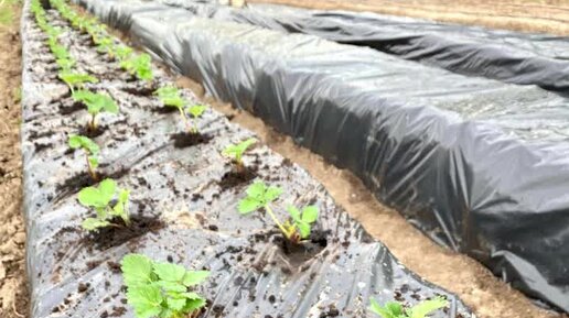 Посадка первой садовой земляники на бугры! Май 2021