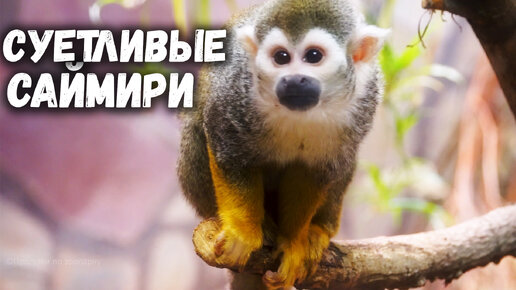 Шустрые обезьянки саймири носятся по всему вольеру. Ленинградский зоопарк