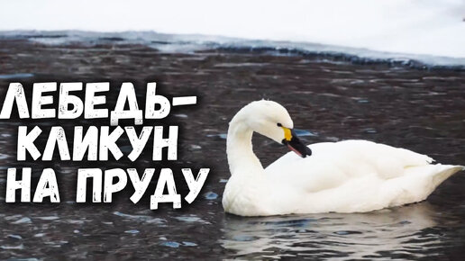 Лебедь-кликун чистит пёрышки и плавает по незамерзающему пруду. Ленинградский зоопарк