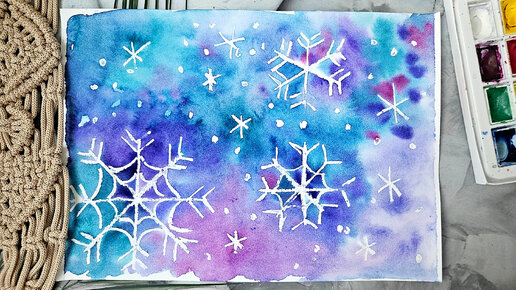 Рисуем волшебные СНЕЖИНКИ ❄️ акварелью / Простой урок рисования для детей от 4 до 10 лет