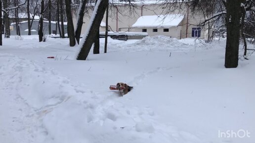 Бигль убирает мусор.