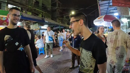 Поедание скорпиона и сороконожки. Китайский квартал в Бангкоке.