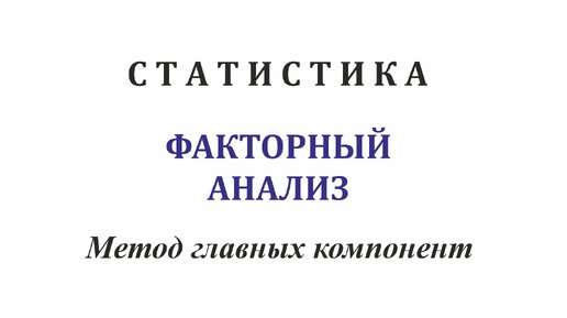 Статистика. Факторный анализ. Метод главных компонент