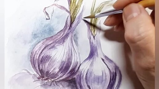 ЧЕСНОЧОК. Акварель. Автор Елена Сизова #акварель #живопись #изо #чеснок