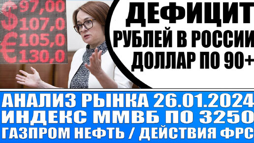 Анализ рынка 26.01 / Дефицит рублей в России / Доллар по 90, Индекс Ммвб по 3250 / Газпром нефть