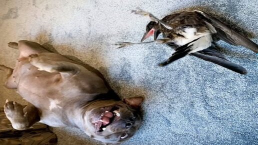 Собака Пегги "вскормила" раненую сороку своим молоком – теперь птица "умеет лаять" и считает себя собакой