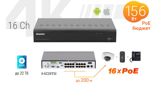 Обзор 16-канальных IP-видеорегистраторов BEWARD RK1116 / RK1116-P: камеры до 12 Мп, P2P, CCTV, ONVIF