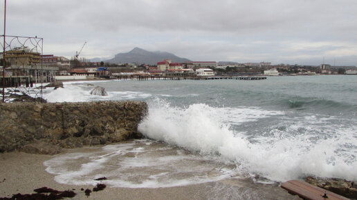 Шторм на Крабьем острове под Судакской крепостью в январе