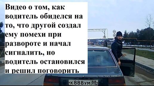 Как водитель обиделся на то, что другой создал ему помехи при развороте и начал сигналить, но водитель остановился и решил поговорить