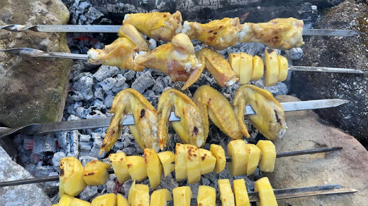 Шашлык из Курицы и Жаренный Картофель на углях. Готовим у Лесного Ручья.