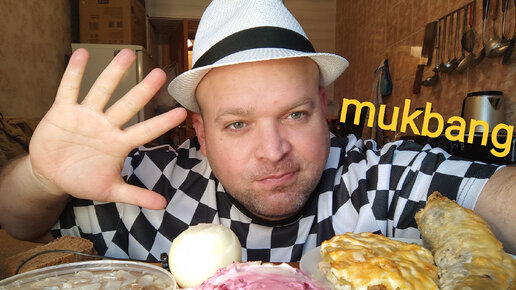 МУКБАНГ селедка и жареный минтай, мясо по французски и под шубой/ОБЖОР/mukbang
